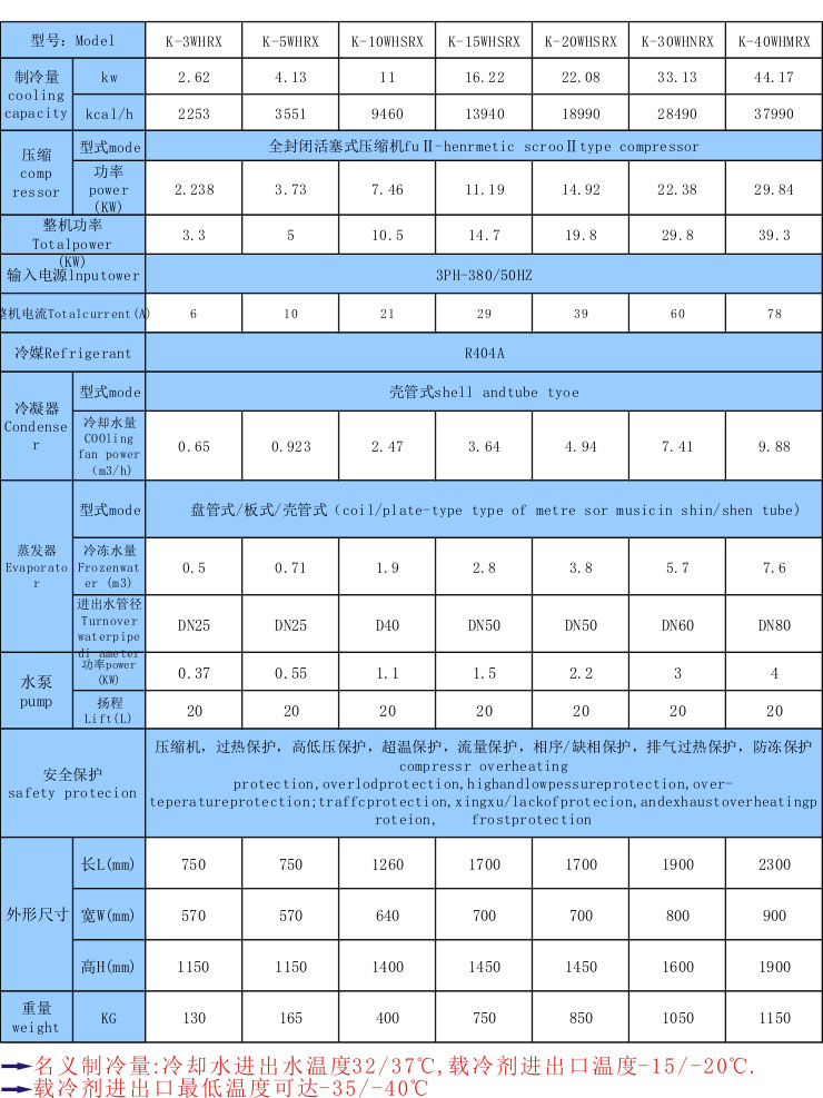 低溫防爆冷水機技術參數