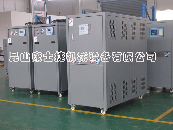 電鍍行業用電鍍冷水機: 種類電鍍液冷卻,使金屬、非金屬分子穩定.冷水機使金屬分子隨著穩定的電流快速貼附上鍍件表面,增加鍍件的密度和平滑,縮短電鍍周期,提高質量,并可有效地回收化學物質,工業制冷設備同理也適用于真空鍍膜工業 。A.直接冷卻:即鍍液直接通過過濾機或是過濾網進入冷凍機的蒸發器進行降溫再回到氧化槽。此冷卻方式的優缺點:冷卻時間短、效果好;缺點就是蒸發器需要做防腐處理(一般采用鈦合金),蒸發器里容易結垢,需定期清洗,否則影響制冷效果和機器運行。B.間接冷卻:氧化槽里鋪置鈦管,冷凍水通過鈦管帶走渡液熱量達到降溫目的;若鋪鈦管不便可添一換熱器(需是鈦合金制成)一邊走冷凍水一邊走鍍液。